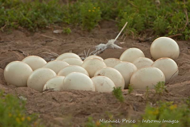 The Lions had killed an Ostrich on her nest. These are some images of the Lions, nest full of eggs which remained, Guests and the first to arrive to start with the 'clean up'. (A White Necked Raven)